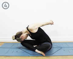 Sit in Sukhasana or easy pose. Now hold your left wrist with your right hand behind the back. Inhale and pull your shoulders behind and expand your chest. Exhale and bend forward and touch your right forehead to your right knee. Inhale and return to the starting position. Repeat the steps and touch your forehead to your left knee. Repeat the steps and touch your forehead to the floor in front of you.